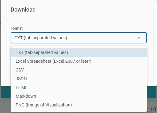 When downloading a report, a new pop-up window will prompt you to select the desired format. The available download formats are: