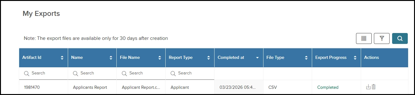 - Once the subscription runs, locate the file under the My Export page or the SFTP folder. The file will have the pgp extension at the end, which indicates it is encrypted.