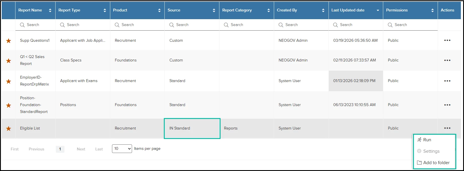 - Go to Settings on any custom or standard recruitment report.