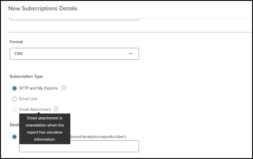 - This feature is available only for the SFTP and My Exports subscription type.