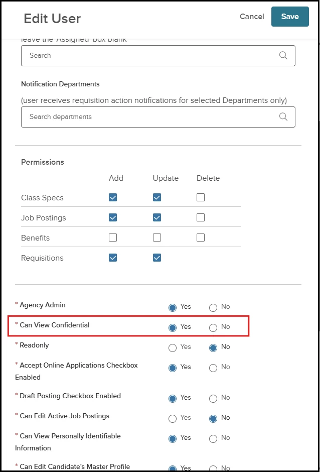 - Can View Confidential Yes/No.