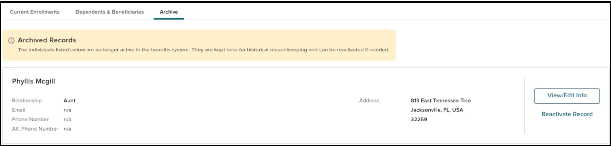 - They will be able to reactivate dependents that were previously hidden or removed by clicking on the Reactivate Record button.