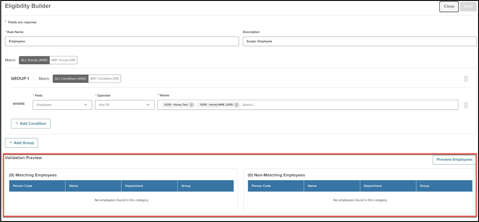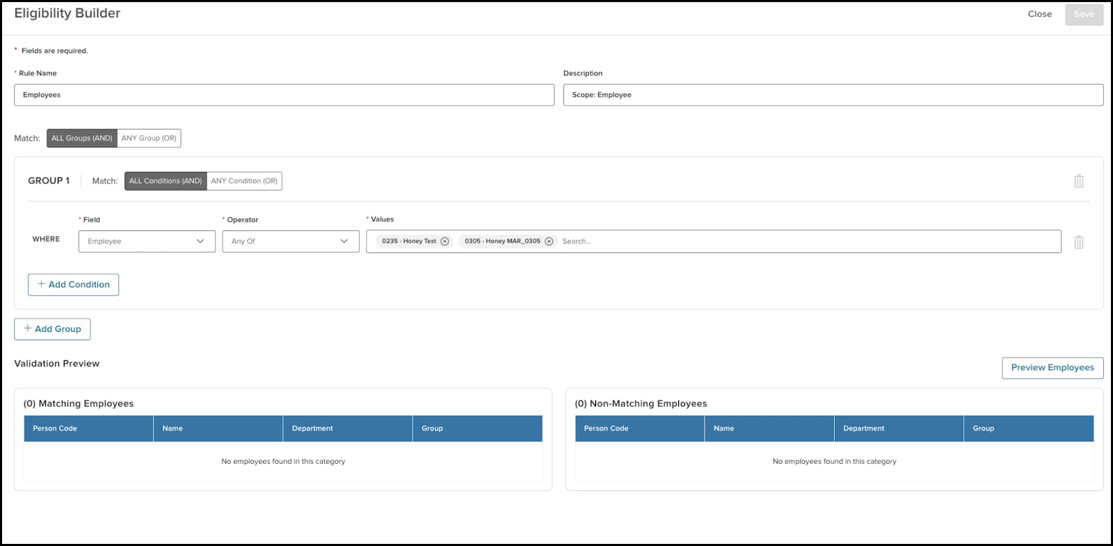 - Employees that match the rule.