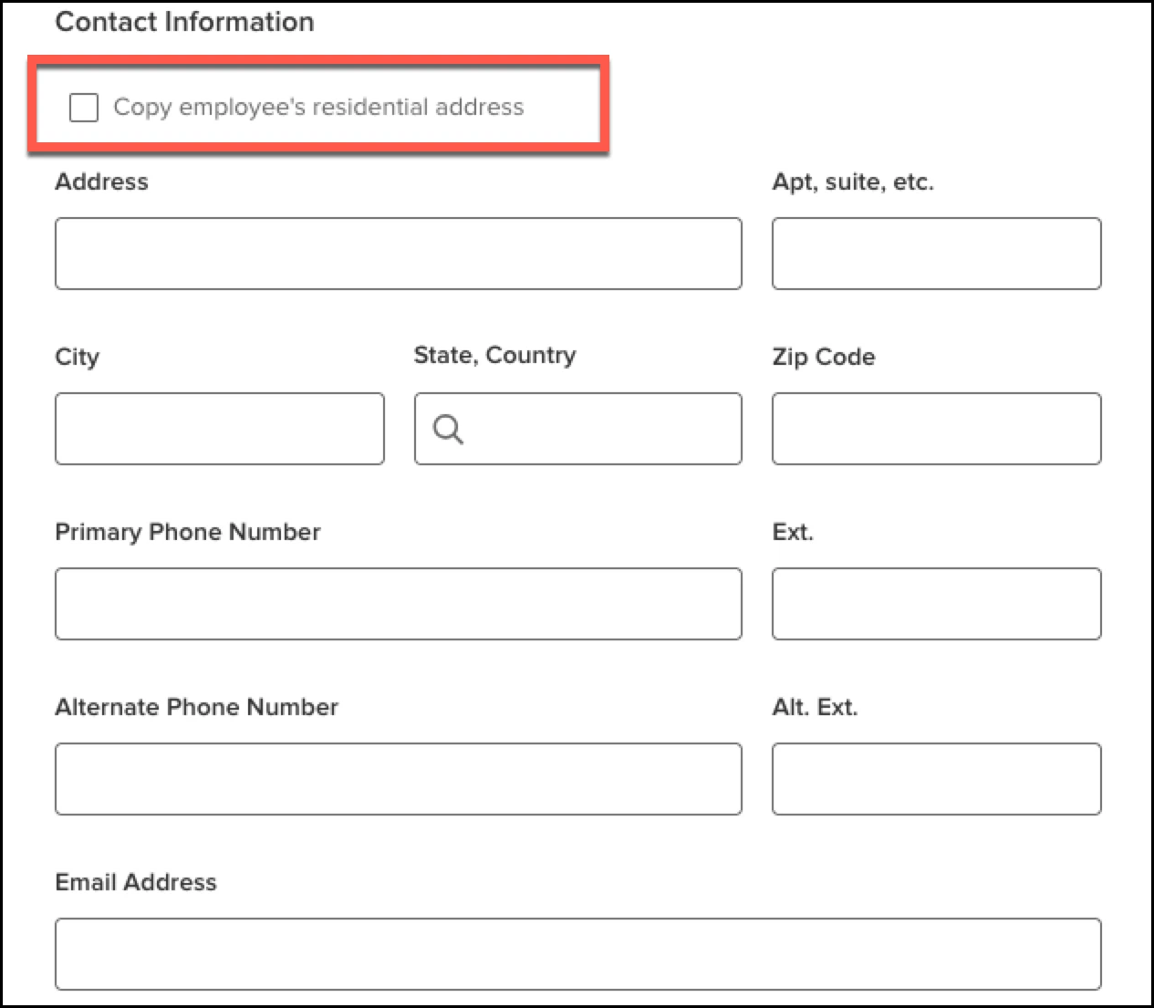 Make it easier to populate the contact’s address, in most scenarios where it is the same as the employee’s.