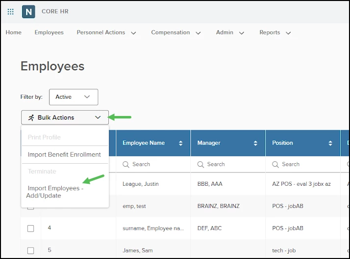 Administrators or anyone who has access to the Employees page and the new Import Employees - Add/Update bulk action.