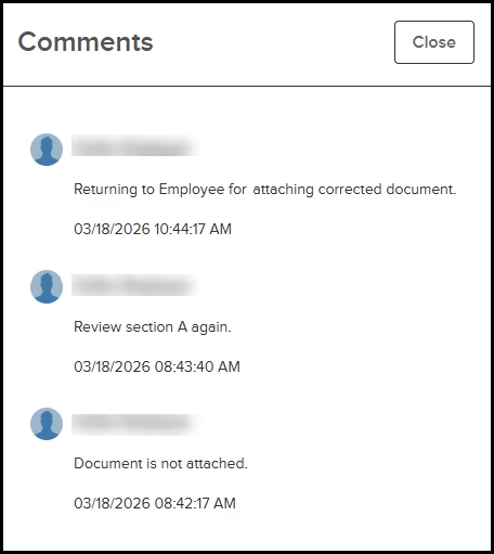 - When the manager revisits the form, they can see all previous comments (their own, HR’s, IT’s) in reverse chronological order.