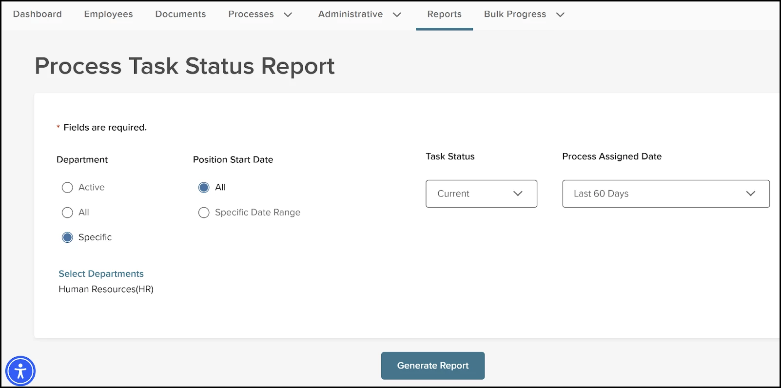 - Improved Performance: By using Current as the default value for tasks and a 60-day window, reports load faster and show the most relevant data immediately.