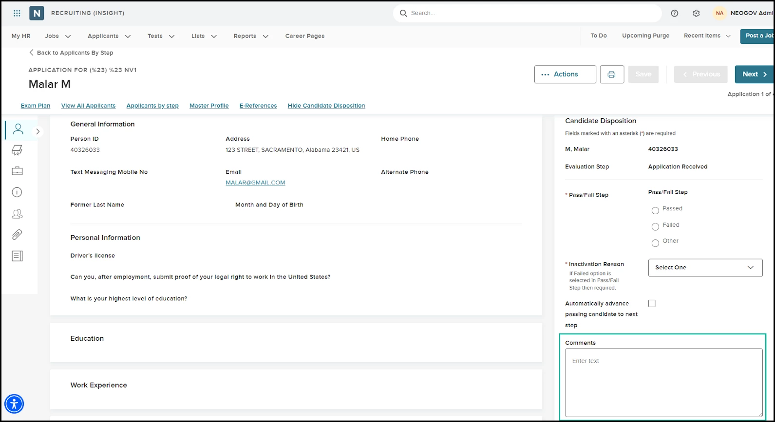 When entering a disposition on the application detail page, the Comments box previously was to the right of the Comments label and only used about half of the width of the disposition panel. Because of this, longer comments required more vertical scrolling. We expanded the Comments box to use most of the available space in the panel.