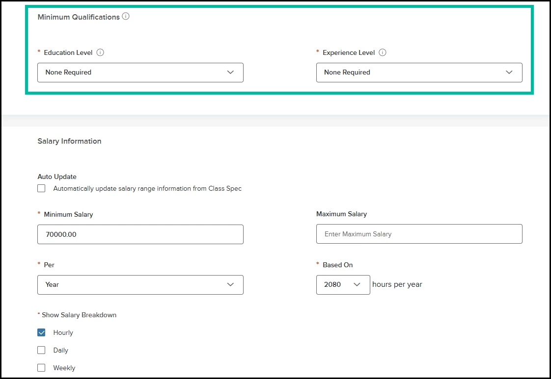 The goal of the fields was to support data modeling for upcoming features to provide benchmarking and recommendations for job posting changes to increase applicant traffic. That is still relevant, but NEOGOV has identified other ways to capture that data and can relieve this extra manual entry when creating or editing postings.