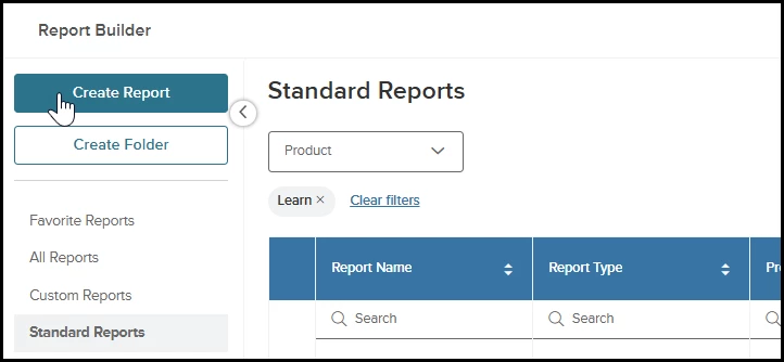 When you click into the Analytics & Reporting product, you'll land on the Report Builder page.
