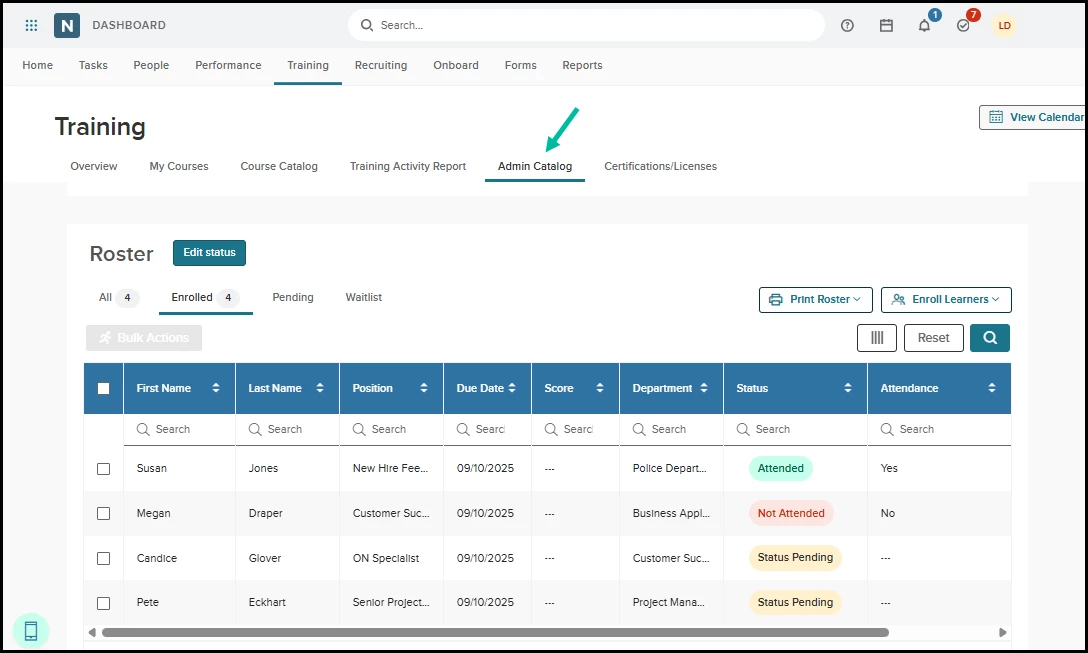 Instructors now have more control over classroom rosters—without relying on system administrators to make changes for them. Previously, instructors could only perform roster actions (such as marking attendance, adding or removing learners, or updating completions) for their direct reports. This limitation often creates delays and extra work for admins, especially in large, multi-organization training programs.