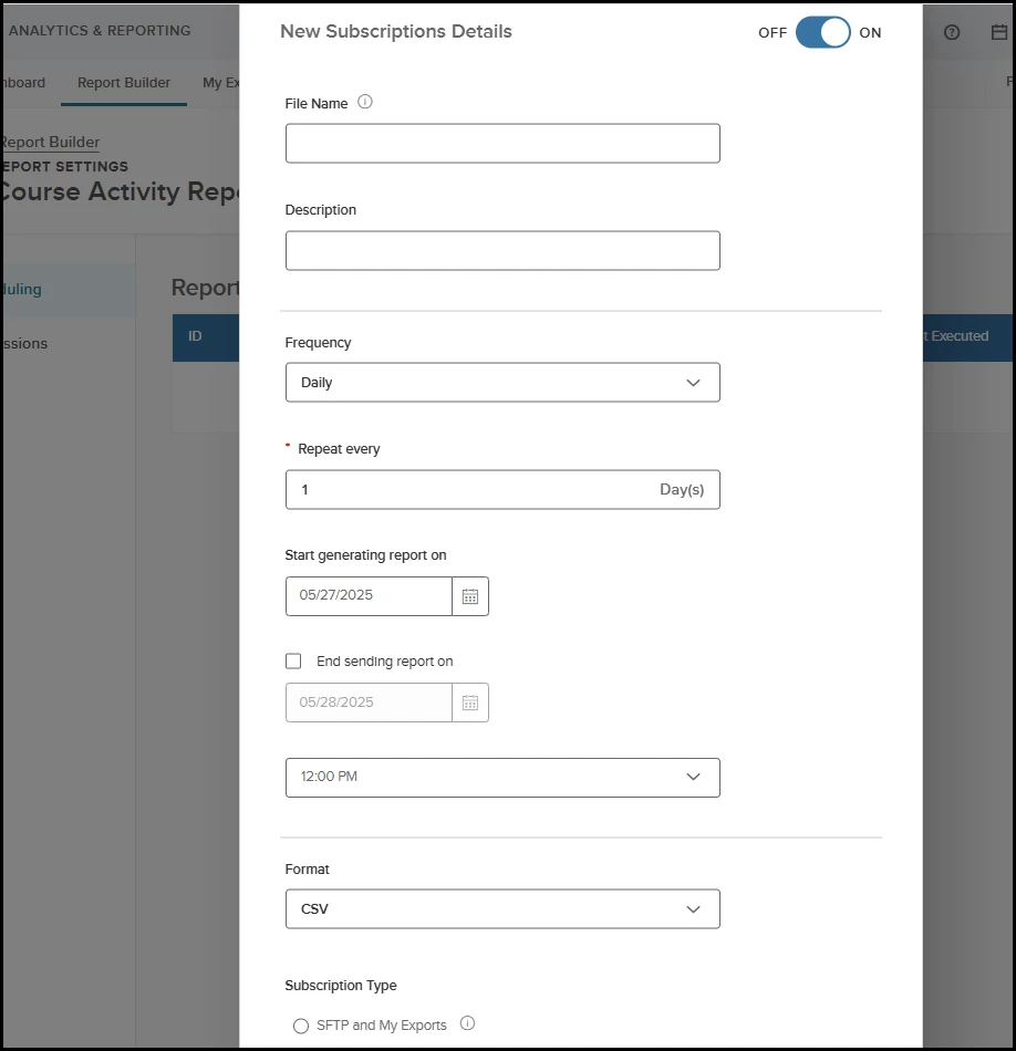 To automate report delivery, click the Subscription button to schedule how often the report should be generated.
