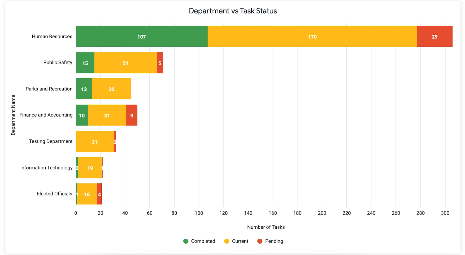 - Furthermore, you can see task status breakdown by department. This empowers you to deliver targeted support, saving time and improving results.