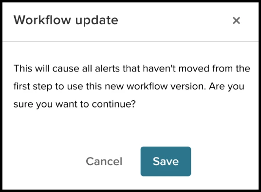 When an administrator saves or changes a workflow, the system will now initiate an update to alerts only on the first step of the workflow, ensuring any newly saved workflow version is applied appropriately. Simply update the workflow, confirm the changes, and the alerts that do not have a check-in attached will go through the new applied workflow state. Please allow some time for these changes to take effect.
