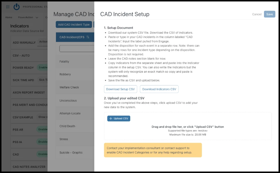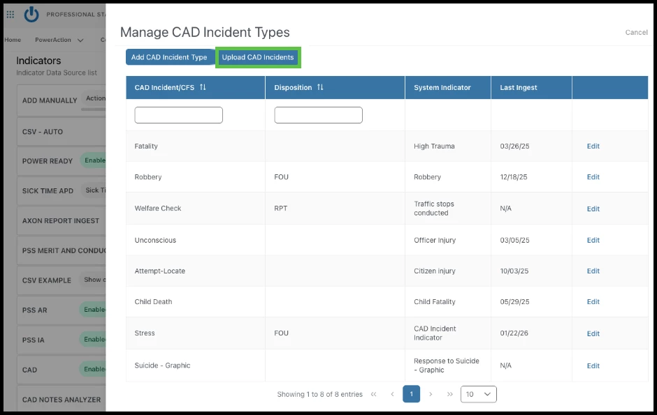 The Upload CAD Incidents, aka bulk upload, option is now always present in the CAD events data source.