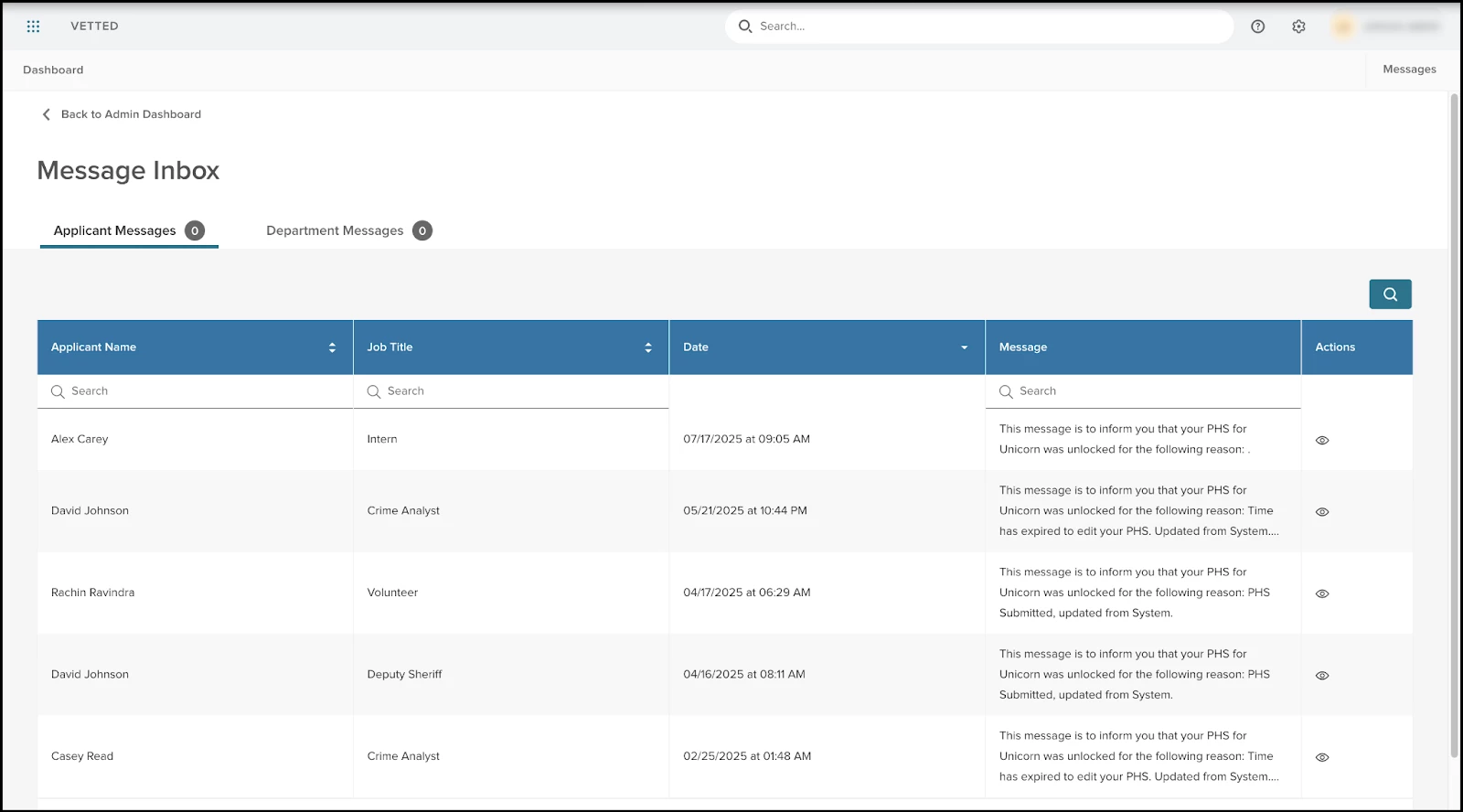 Communication with applicants just got a major upgrade! With this release, department users (Admins and Investigators) have access to a centralized Messaging Inbox—no more drilling into each applicant’s file to track messages.