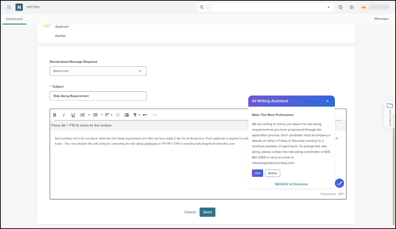 Communicating with candidates just got a whole lot faster. We’ve introduced Bulk Messaging, allowing department users to send a single message to multiple applicants simultaneously without having to open individual applicant files. This update is designed to eliminate repetitive tasks and save you valuable time during high-volume hiring cycles.