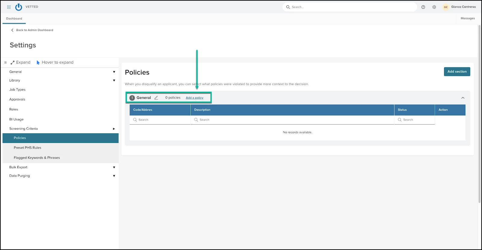 Policy-Driven Disqualification Requirements: When disqualifying an applicant, the system now prevents logging a disqualification if only a policy "Section" is present with no individual policies. Users will receive a notification that a specific Individual Policy must be added and selected to complete the action. This applies to both the Status & Settings page and the Workflow Wizard.